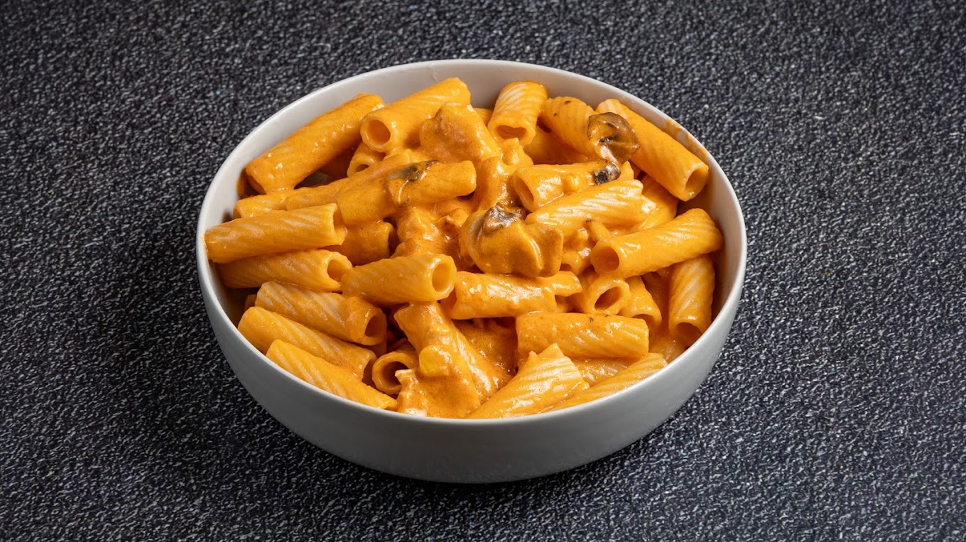 With vodka sauce, fresh roasted chicken, mushrooms, Parmesan, and charred corn from the wood-fired...